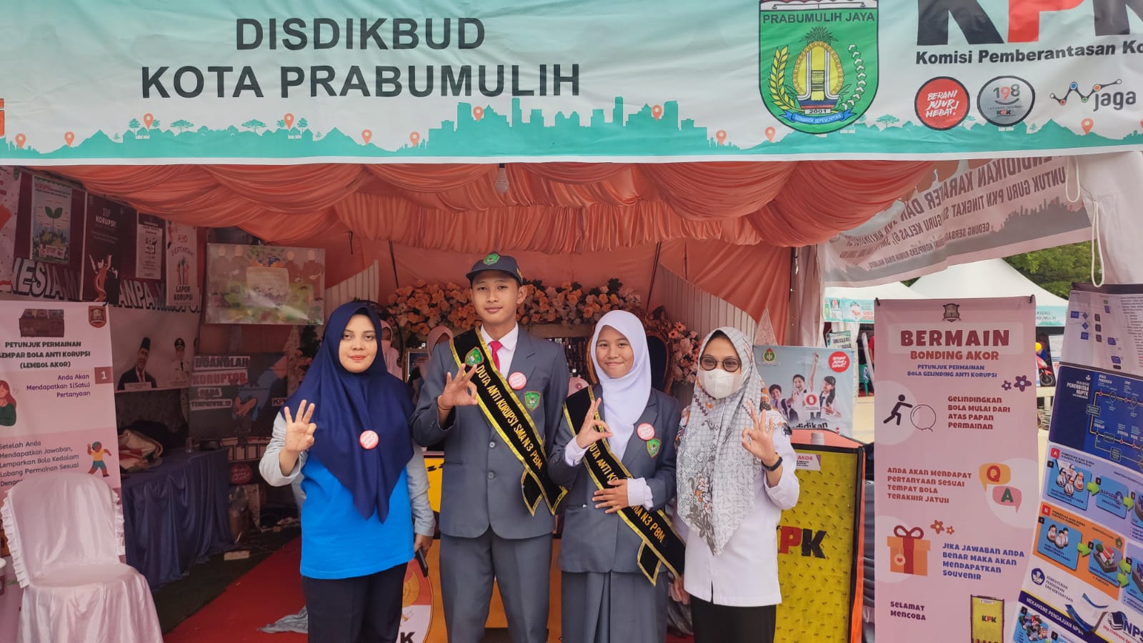 Selain itu juga Smanti turut Andil menjaga Stan Dinas Pendidikan KOta Prabumulih dengan 2 siswa Duta Anti Korupsi Smanti (Muhammad iksan al kautsar, Akifah Fatihah Salsabila) dan 1 Guru Pembina Rizka Julaeha, S.Kom.