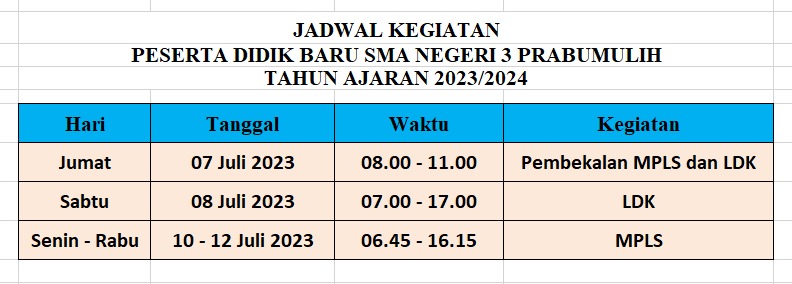 SELAMAT DATANG PESERTA DIDIK BARU SMA NEGERI 3 PRABUMULIH TAHUN AJARAN 2023/2024