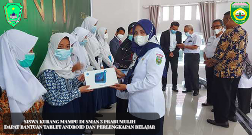 Kepala SMA Negeri 3 Prabumulih, Freni Listiyan SPd MSi mengatakan bantuan tersebut masing-masing diantaranya berupa tablet android berasal dari Kementerian Pendidikan dalam mendukung proses belajar mengajar secara dalam jaringan (daring), baik tenaga pengajar, maupun bagi siswa kurang mampu yang tidak memiliki perangkat.