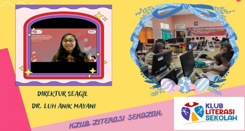 DI hadiri oleh Direktur SEAMEO ((Southeast Asian Ministers of Education Organization) Regional Center for Quality Improvement of Teachers and Education Personnel (QITEP) in Language (SEAQIL). Dr Luh Anik Mayani, Dilanjutkan dengan pemaparan materi basic. Alhamdulillah kegiatan berjalan dengan lancar pelatihan akan berlangsung hingga tanggal 13 september,. Peserta klub Literasi sebanyak 30 orang dari kelas x dan kelas xi. mereka antusias mengikuti kegiatan dan menimba ilmu.